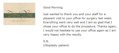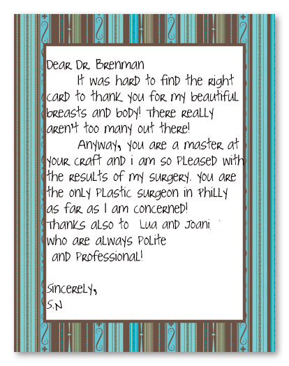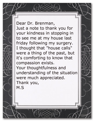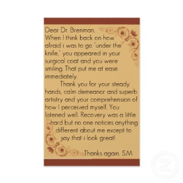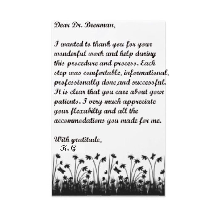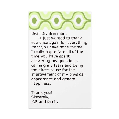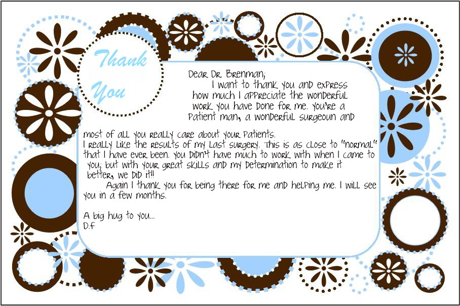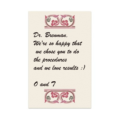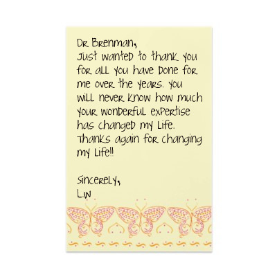 We have received so many gracious letters and notes from our patients, regarding the procedures that they have undergone, that we would like to share them with you. Just click on the thumbnails and you will be able to read the notes that were sent.